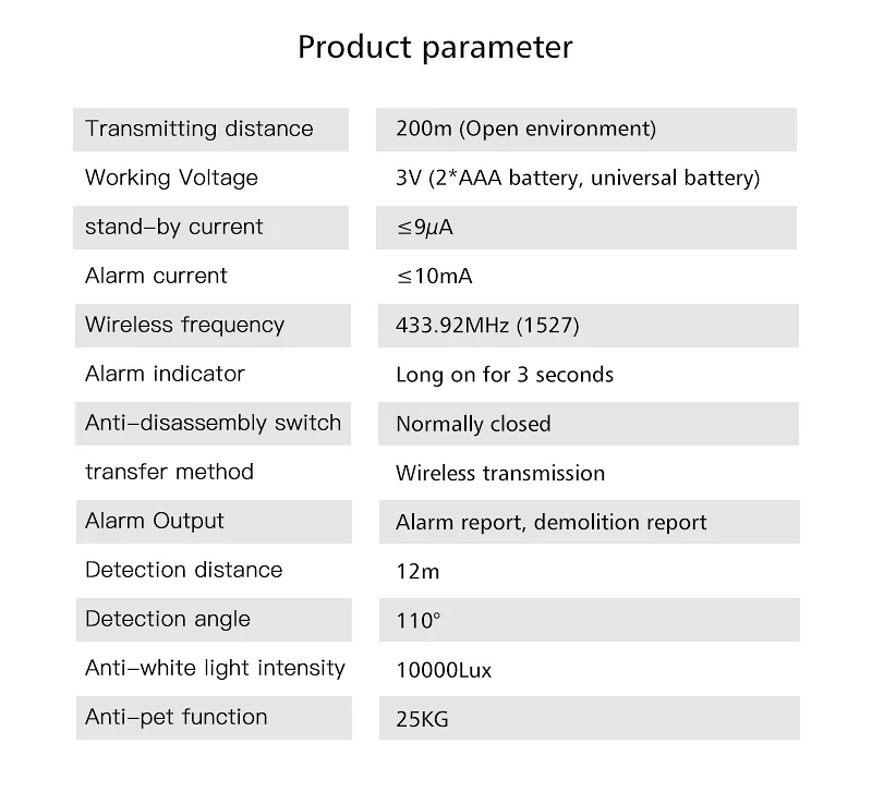- Número de modelo: 433mhz Wireless Anti Pet Detector