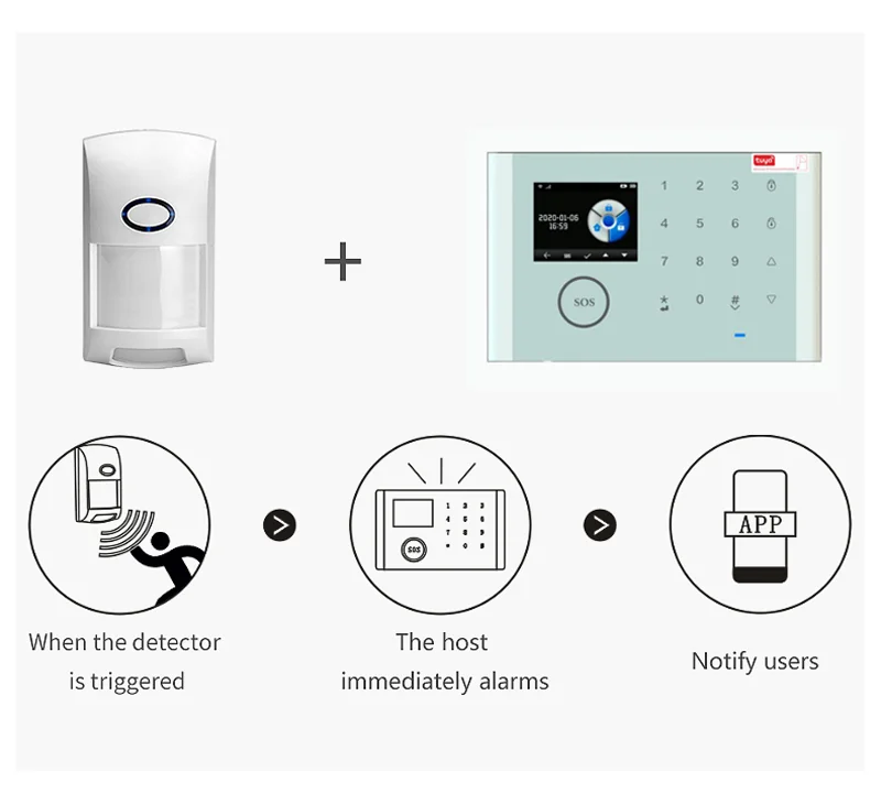 2. Puede funcionar con la mayoría de las alarmas de host de 433Mhz del mercado.